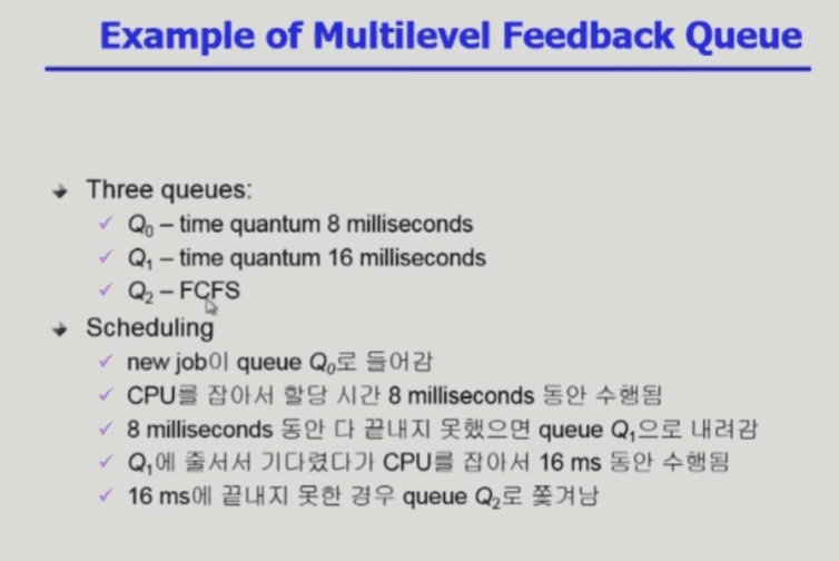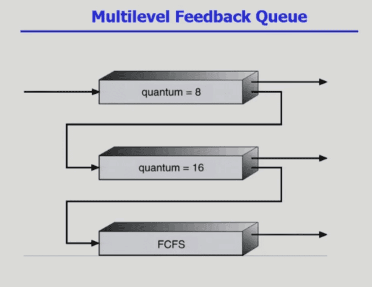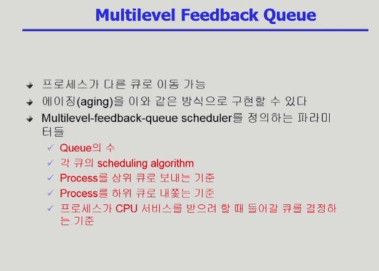멀티레벨 큐인데, 프로세스가 다른 큐로 이동 가능