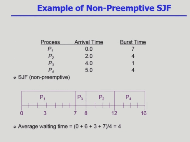 non-preemptive한 방법 : 한번 CPU를 잡으면 이번 CPU Burst가 완료될 때까지 CPU를 선점 당하지 않음