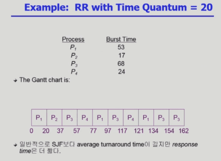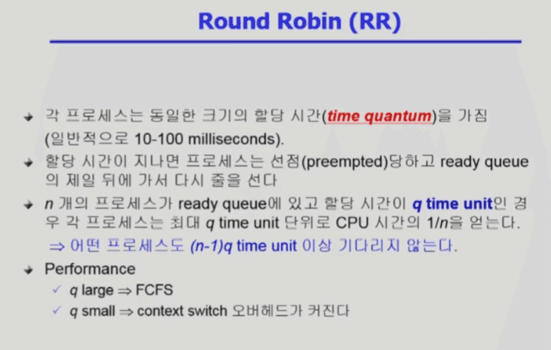 q small - 즉 할당 시간이 너무 짧으면 컨텍스트 스위칭이 너무 자주 일어나서 오버헤드가 커짐