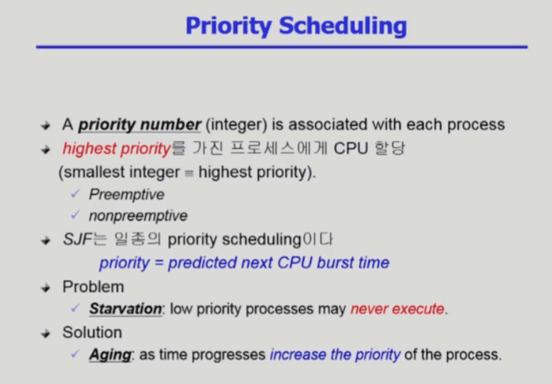 역시 우선순위가 낮은 프로세스는 영원히 실행되지 않을 수 있음
