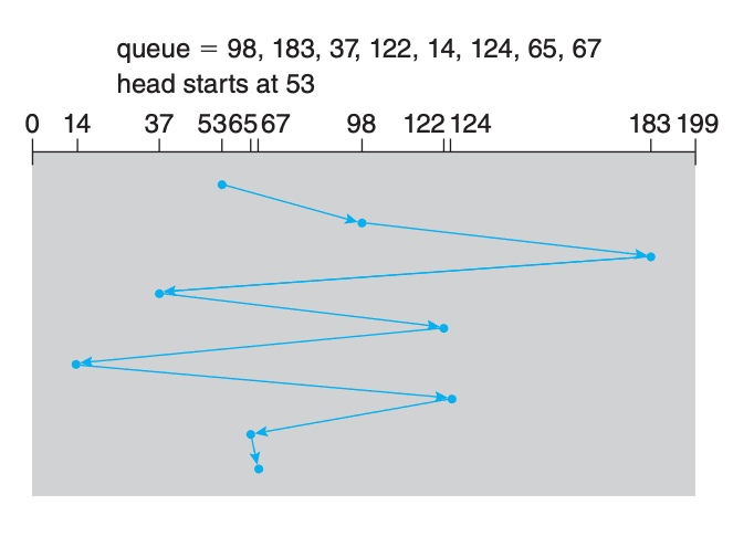 디스크 헤드의 이동 거리를 최소화할 수 있음