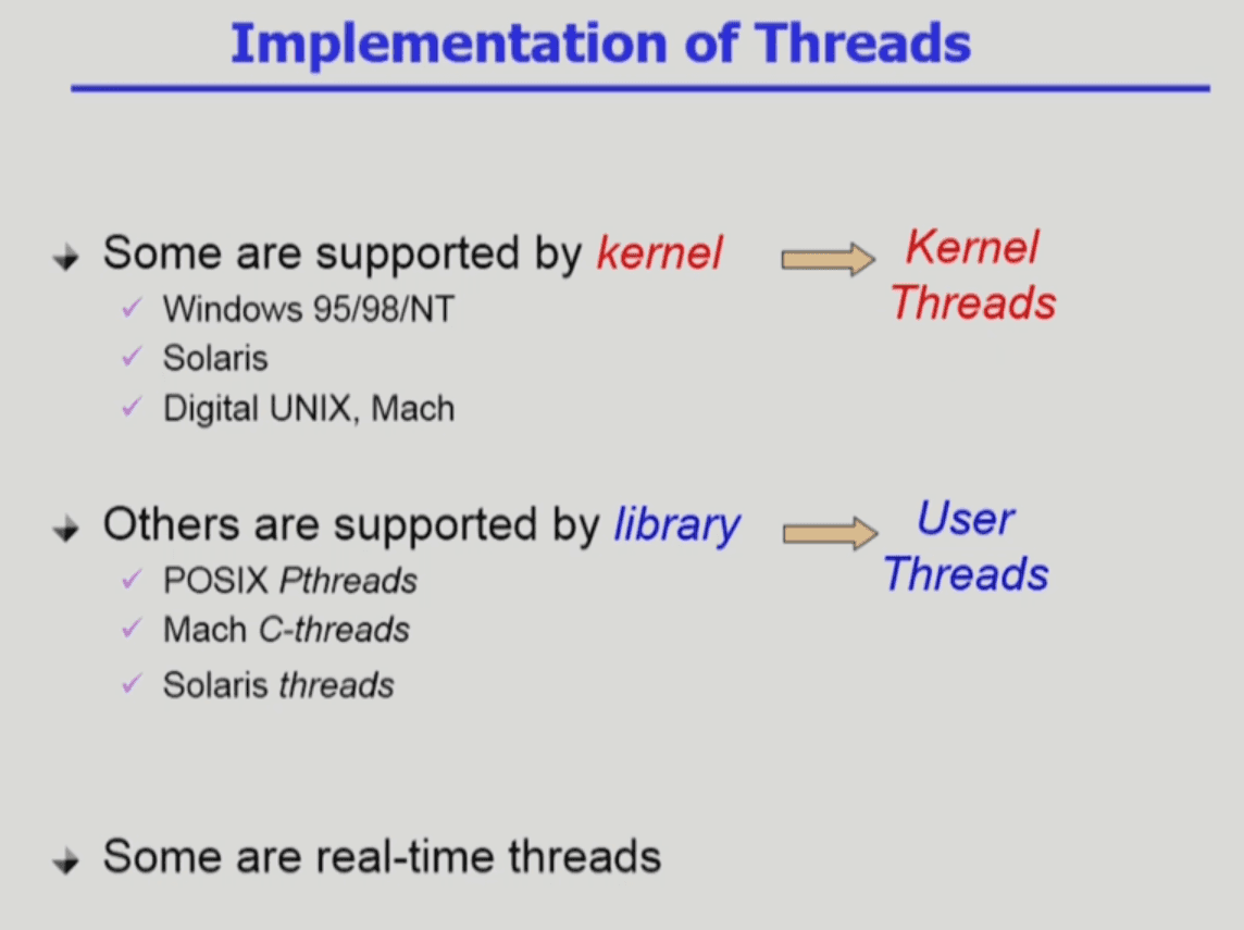 - ◦운영체제는 하나의 프로세스 안에 여러 개의 쓰레드가 있다는 것을 모름