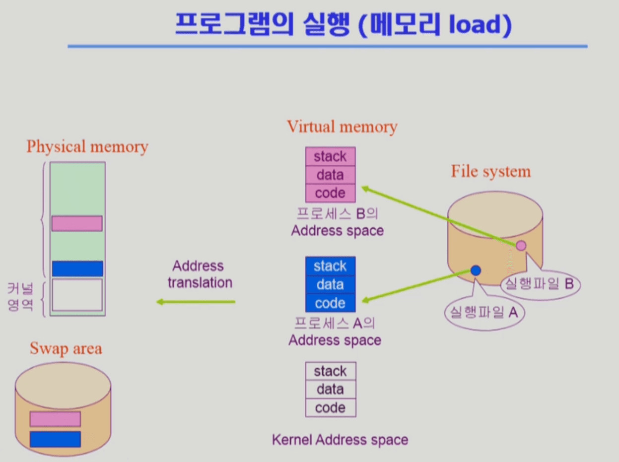 파일 시스템으로부터 프로그램을 메모리에 적재하기 위해서는 먼저 Virtual Memory로 변환하는 과정이 있음
