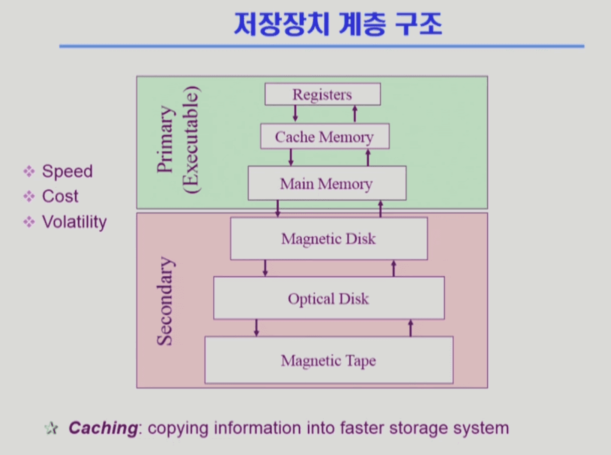 Caching: 느린 매체에서 빠른 매체로 정보를 읽어들여서 사용하는 것